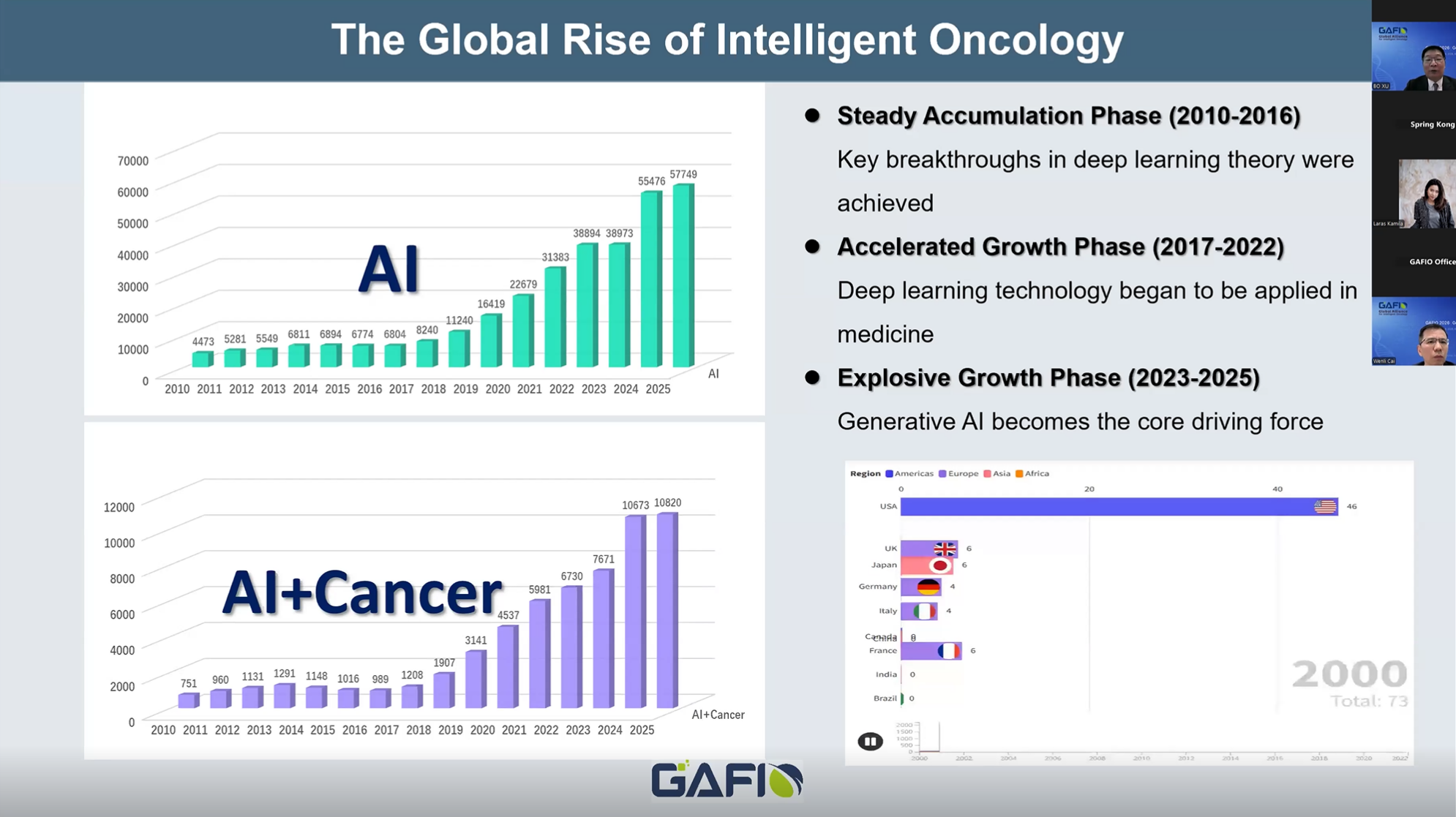 · The Imperative for Global Collaboration: Highlighting the explosive growth in AI-cancer research since 2015, Professor Xu noted that while pioneering work is concentrated in a few nations, there is a "global need for applying these technologies in many more countries." He positioned GAFIO—the Global Alliance for Intelligent Oncology—as the essential non-profit organization to bridge this gap, accelerate clinical translation, and foster interdisciplinary collaboration.