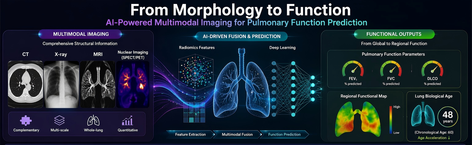 Traditional pulmonary function tests (PFTs) are indispensable but have well‑known blind spots: reliance on patient cooperation, lack of regional information, and inability to detect early structural changes. A new review in Intelligent Oncology (Volume 2, Issue 2, 2026) discusses how multimodal imaging (X‑ray, CT, MRI, nuclear medicine) combined with radiomics and deep learning can predict pulmonary function. It highlights the shift from traditional PFTs (limited by patient cooperation, lack of regional data, and insensitivity to early lesions) to imaging‑based models that quantify emphysema, airway remodeling, ventilation‑perfusion mismatch, and even lobar‑level functional contribution. The article also introduces the novel concept of “lung biological age” — using imaging features to assess how an individual’s lung function deviates from age‑matched norms.